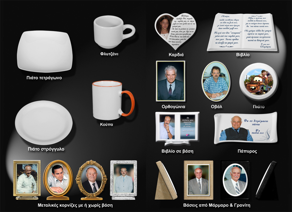 Εκτυπώσεις σε πορσελάνες. πέτρα, κεραμικά.
